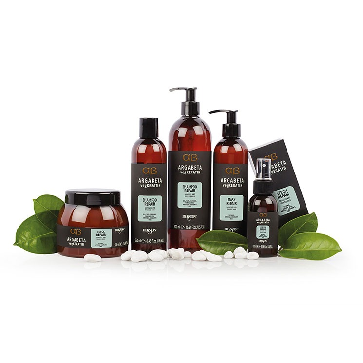 تم تركيب قناع VegKeratin Mask Repair ARGABETA بدون السيليكون والزيوت المعدنية والملونات الاصطناعية. نباتي طيب